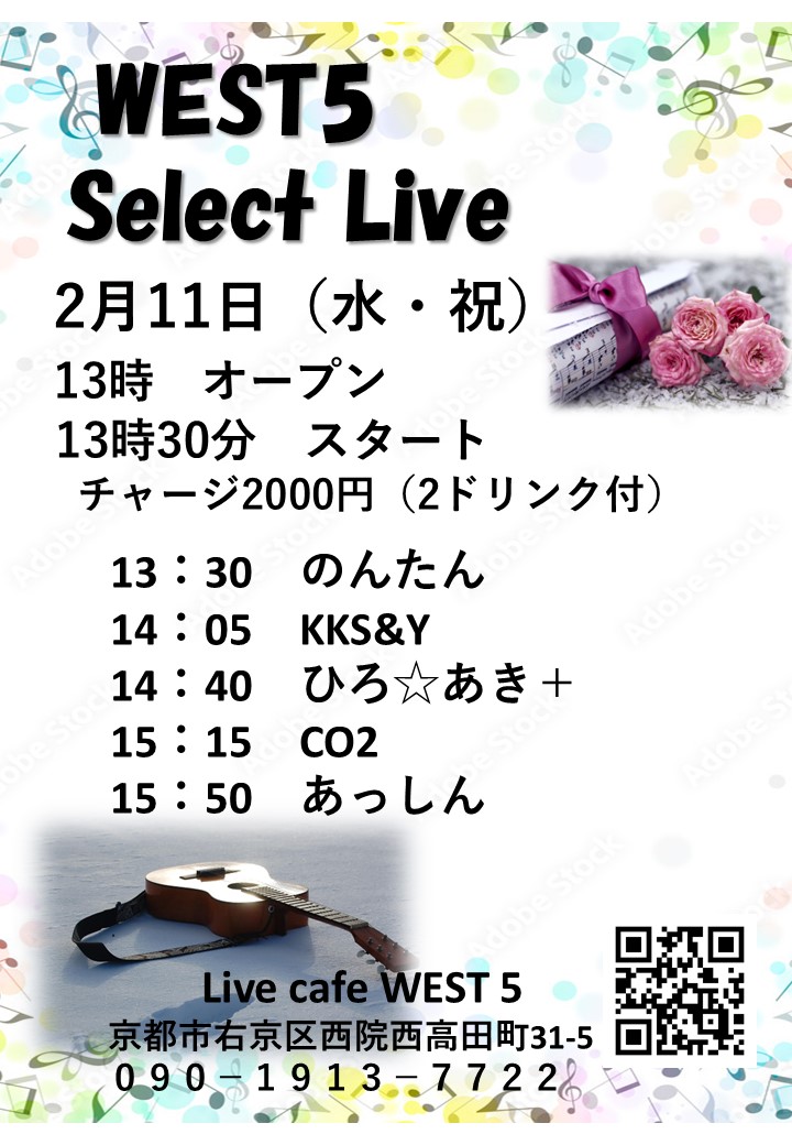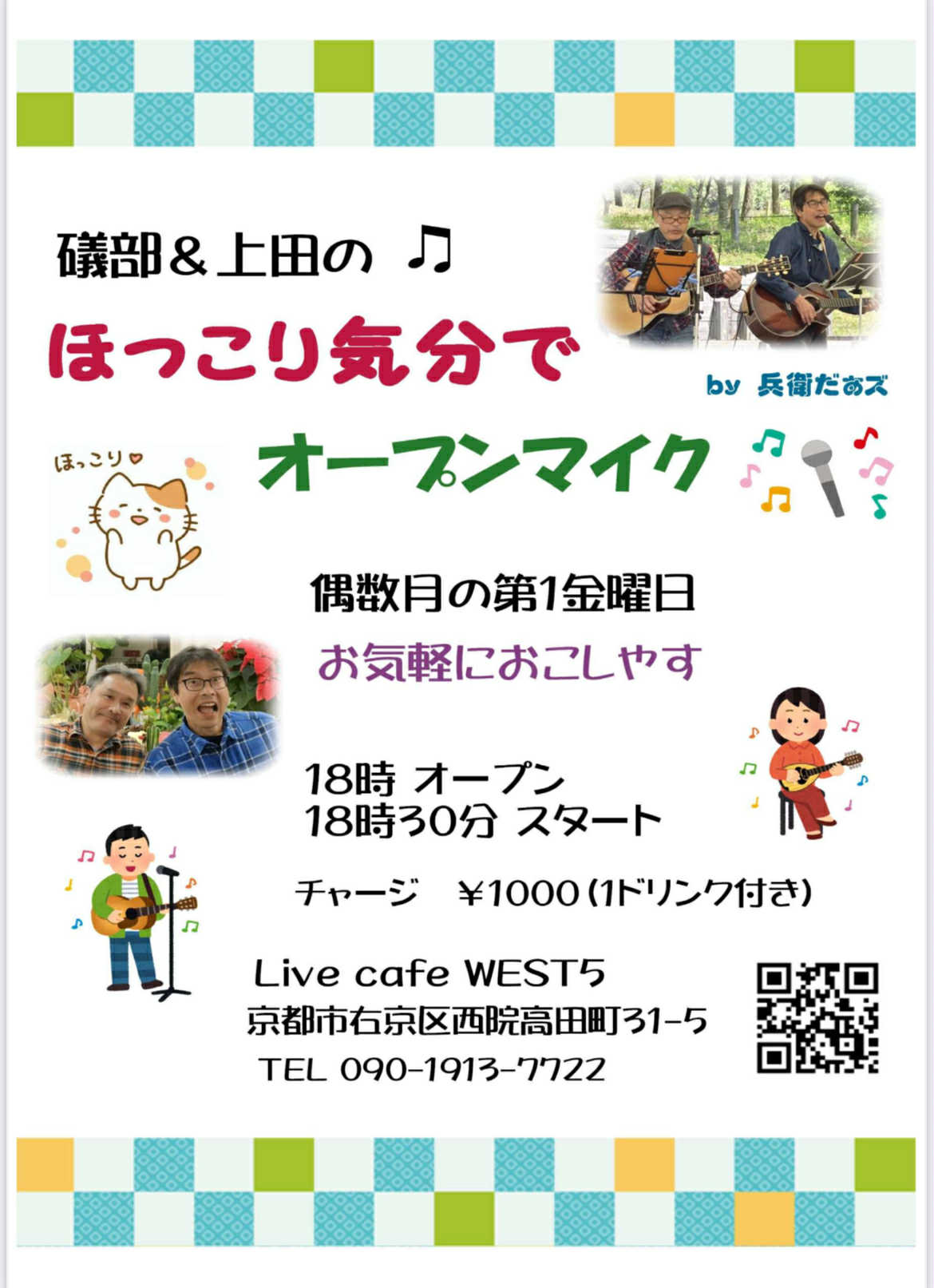WEST5は京都の街中、西院にある小さなライブカフェです。